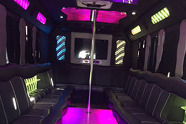 Featuring absolutely stunning interior equipped with rich leather wrap around seating, alluring LED and laser color changing lighting, a custom built bar, coolers with ice cold soft drinks and water, a booming sound system with iPhone/iPod connectivity, a dancing pole, and ample cup holders. Our Party Buses are beautiful, spacious, and fun, making it perfect for any occasion with a large group of passengers.