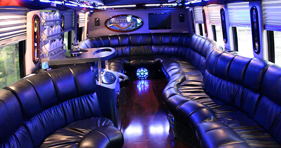 Featuring absolutely stunning interior equipped with rich leather wrap around seating, alluring LED and laser color changing lighting, a custom built bar, coolers with ice cold soft drinks and water, a booming sound system with iPhone/iPod connectivity, a dancing pole, and ample cup holders. Our Party Buses are beautiful, spacious, and fun, making it perfect for any occasion with a large group of passengers.